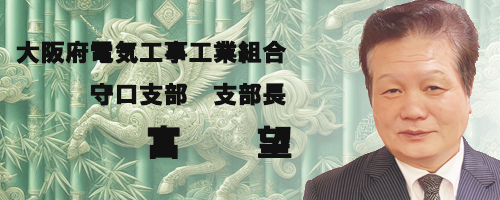 大阪府電気工事工業組合守口支部長の富 望 様はじめ、組合員の皆様におかれましては、幸多き新春をお迎えのこととお慶び申し上げます。旧年中は、格別のご支援を賜り、厚く御礼申し上げます。
